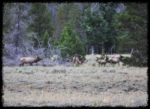 After a restful night, we spent the next day exploring Grand Teton National Park. Now, every time we mention Grand Tetons to Frenchie, it always evokes a little giggle, since the word “Teton” has a very interesting translation into French. (The early founding pioneers in this area must have had a sense of humor, methinks.) Names aside, this park is beautiful, with the Grand Teton mountain range dramatically rising from the flatlands. We did a moderate hike halfway around Jenny Lake, seeing some beautiful views, including a waterfall, then we lazily took the shuttle boat back, giving us a different perspective on the lake. After that, we drove around the park, turning out at various turnabouts, giving us varying views of the mountains, the rivers, and the valley floor. A real highlight, however, was catching some migrating elk on our way out of the park. Thank goodness I just bought my telephoto lens!