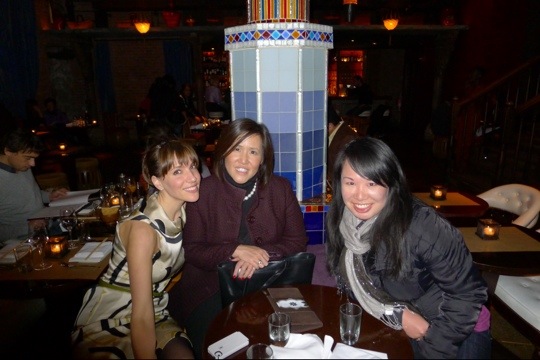 Sunday was our day of 2 brunches with 2 different groups of friends. Our first brunch was with our friends, the Goldes, in a cute French bistro on the Lower East Side, where we had a truffle omelette, mini pancakes, and smoked salmon. Then, after the meeting came brunch #2 with another group of friends, including Kim and Nicci. There, my baked eggs (filled with lots of cheese) and raspberry Bellini completely put me over the edge. To cleanse our systems, Kim made us some lovely veggie/fruit juice (her new fad), which was then promptly undone by a Girls Night Out with cocktails at the Spice Market…