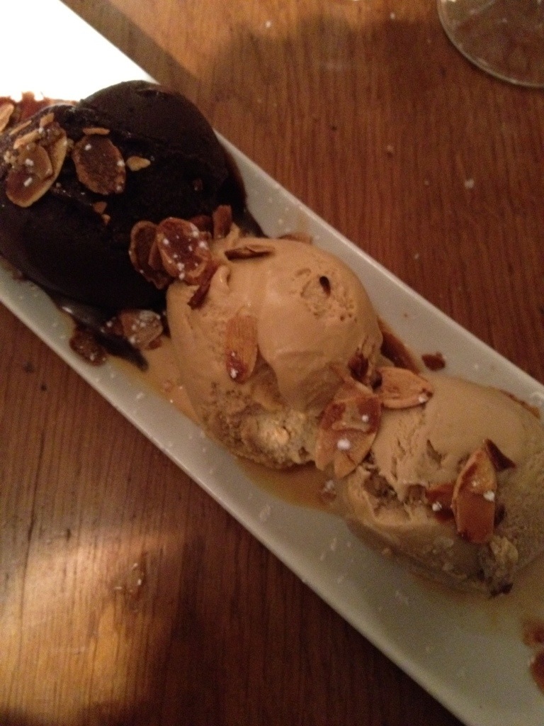 3 ice cream dessert: Ethiopian Mocha, Salted Caramel, and Extra Dark Chocolate Sorbet. Incredibly delish!