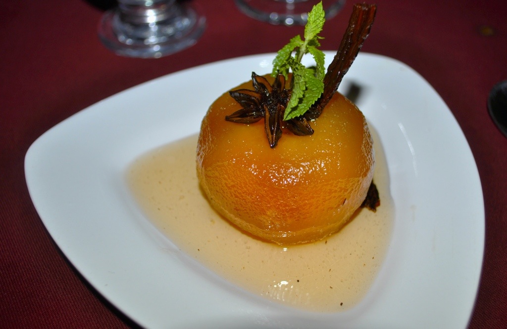 Then for dessert, a baked apple soaked with anise, cardamom, and mint…