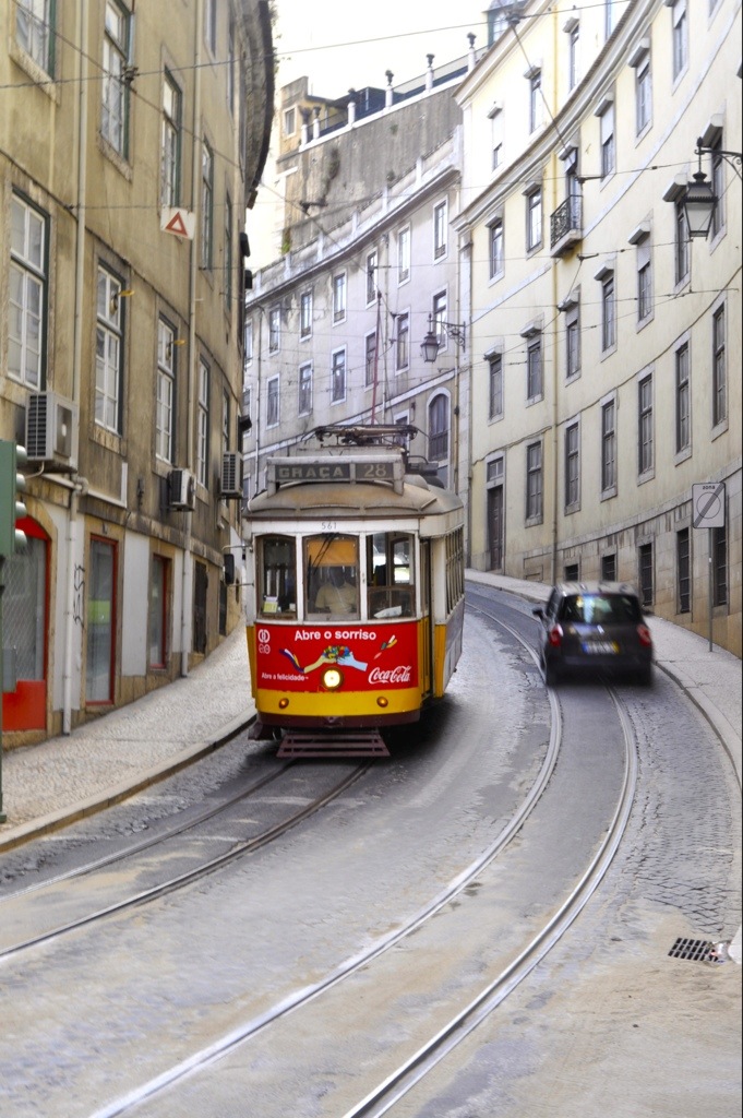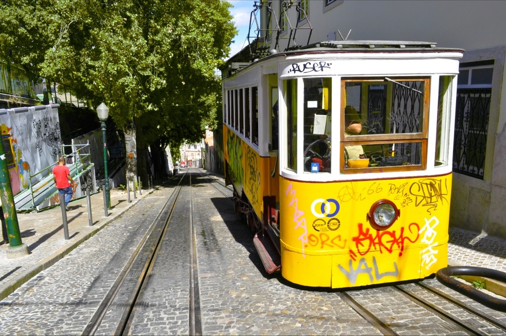 Tram/funicular taking tourists up the steep street. We were fortunate to happen upon this from the top and just walk down.
