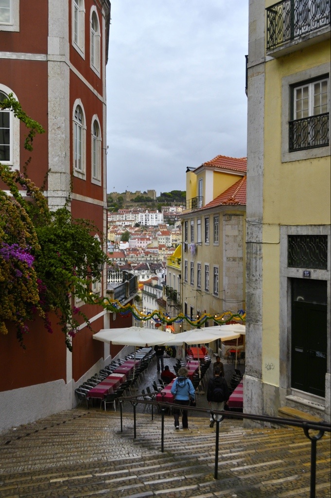 Going up some crazy stairs to get to the neighborhoods of Chiado & Bairro Alto