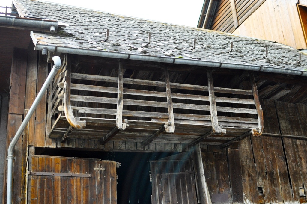 Interesting balcony construction in the really tiny town of Dousy – no nails used!