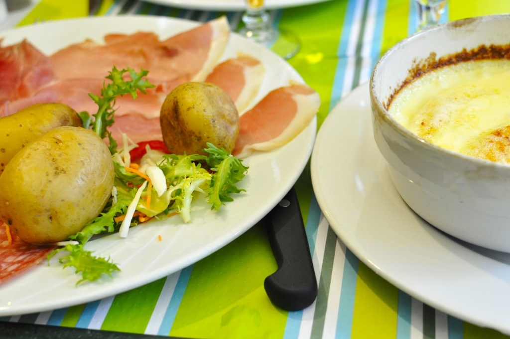 Lunch – Charcuterie and potatoes with melted Roblechon cheese