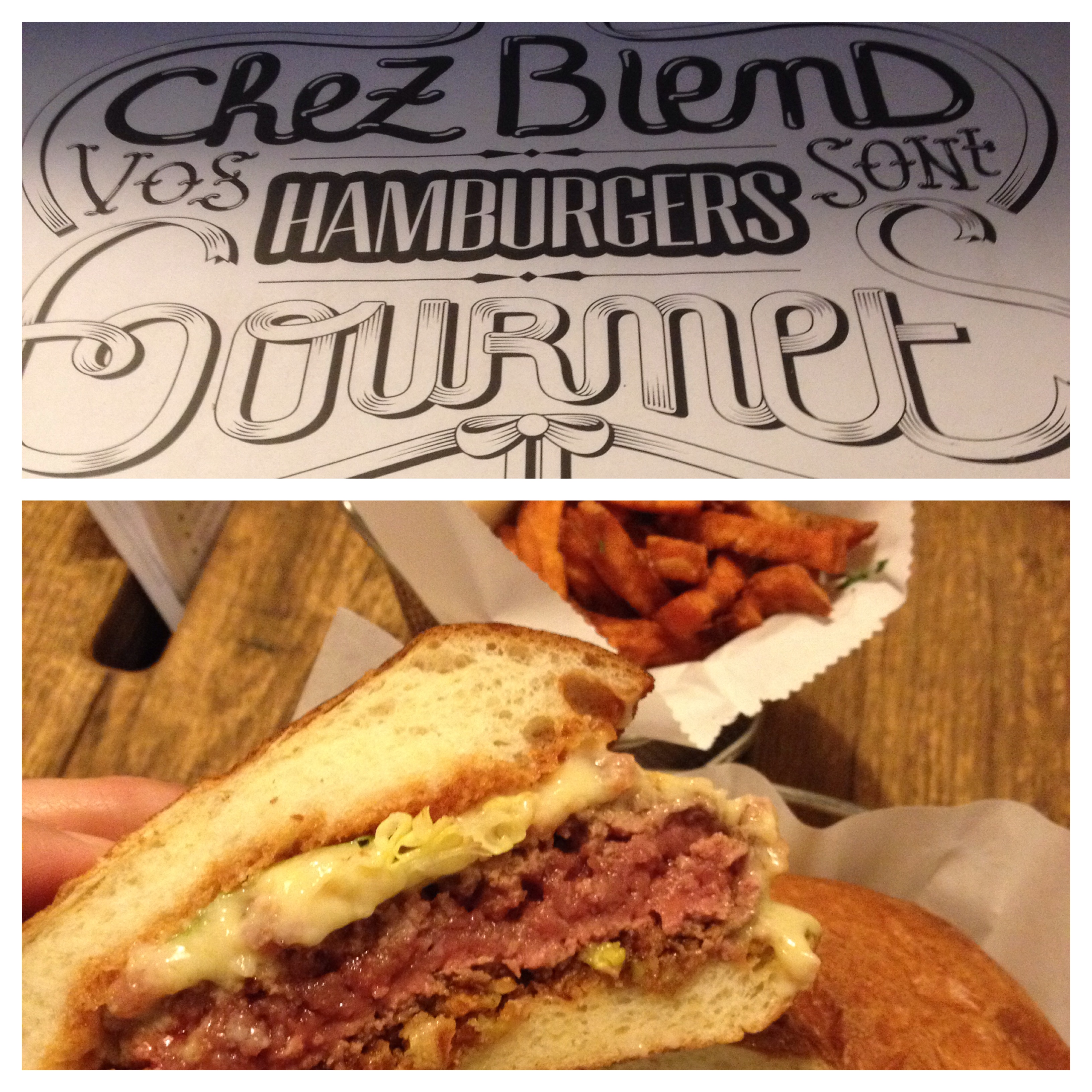 It was our 2nd day in Paris and we still hadn’t had a French meal yet. As much as a café beckoned, I had another idea for a Parisian lunch. My friend Fanny in Florida had e-mailed a Thrillist article that listed the 10 top burger joints in Paris. Apparently, the gourmet burger has become the new hot thing on the Paris culinary scene and I just had to try one out. Besides, there were sweet potato fries (!!!!)…. So I took my parents on another march through the Paris streets to find a trendy, tiny burger spot called Blend. Yes, it was a hamburger place, but they baked the bun on premises and the beef was from local French cows. The verdict? The portions were smaller than we’d get at a gourmet burger place back in SF, but the burger was nicely seasoned and the sweet potato fries were perfectly crispy.