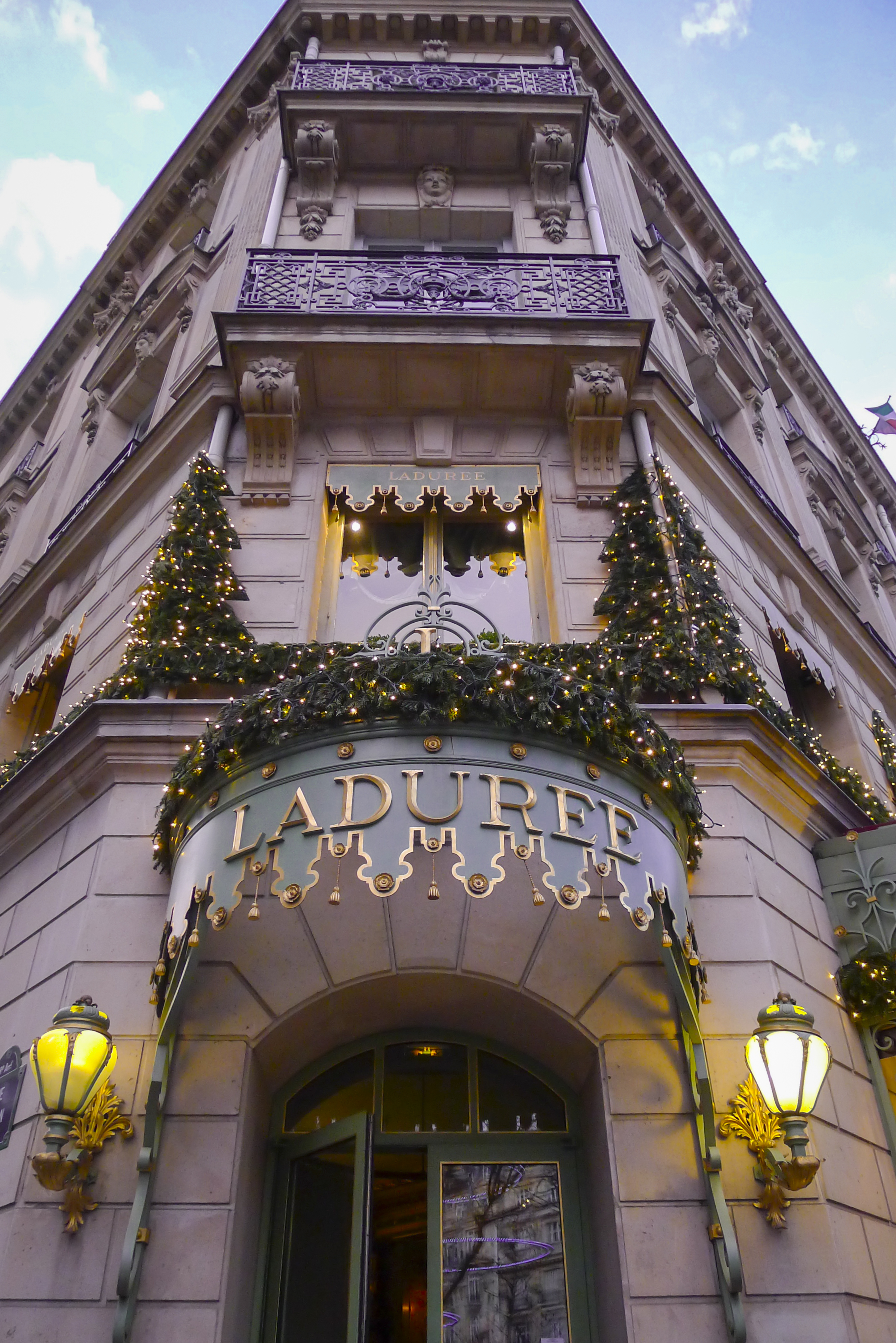 With all this walking, we decided to take a little break into the beautiful cozy surroundings of Ladurée. Ladurée is famous for their beautiful, delicate macarons, in fact, the place was packed full of people buying these macarons for the holidays.