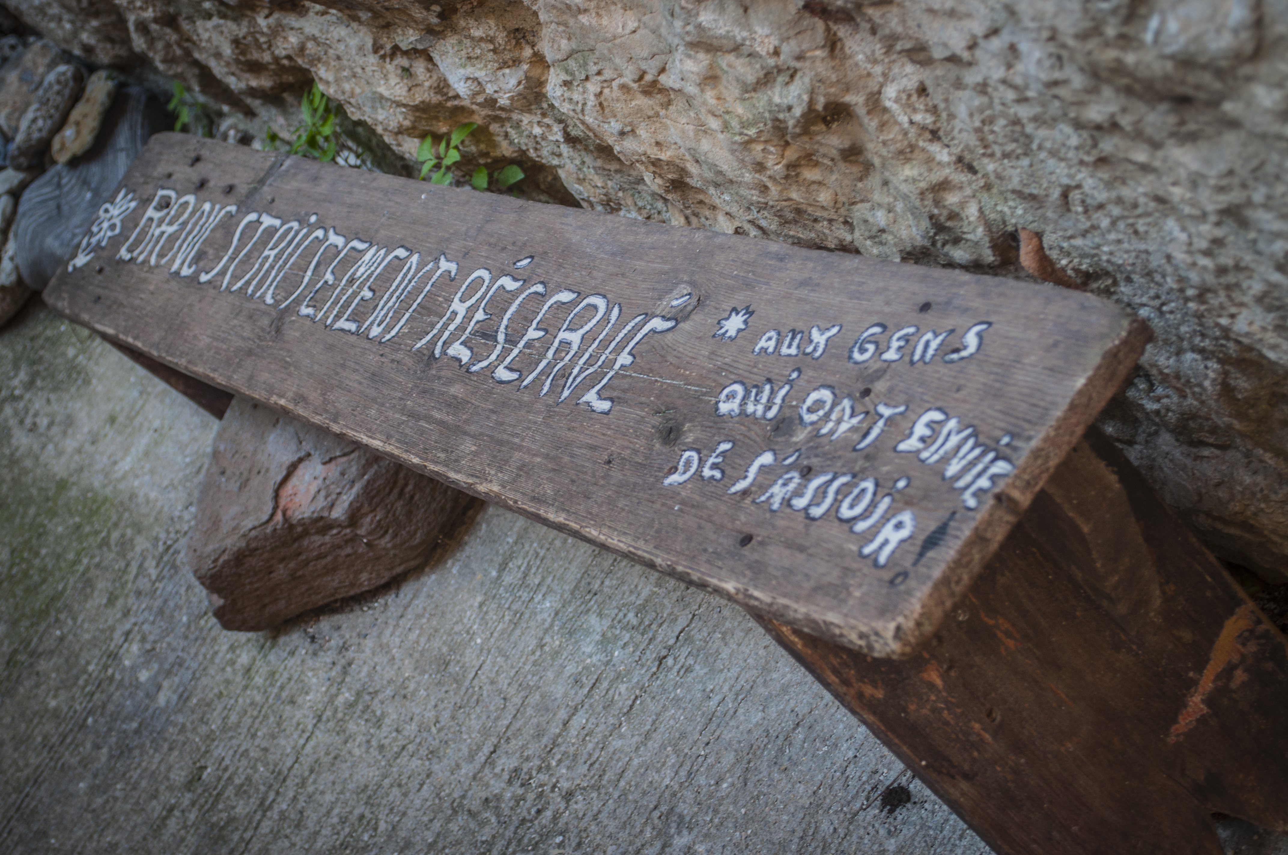 Translation (I think): “Bench Strictly Reserved *For Those Who Wish to Sit Down”