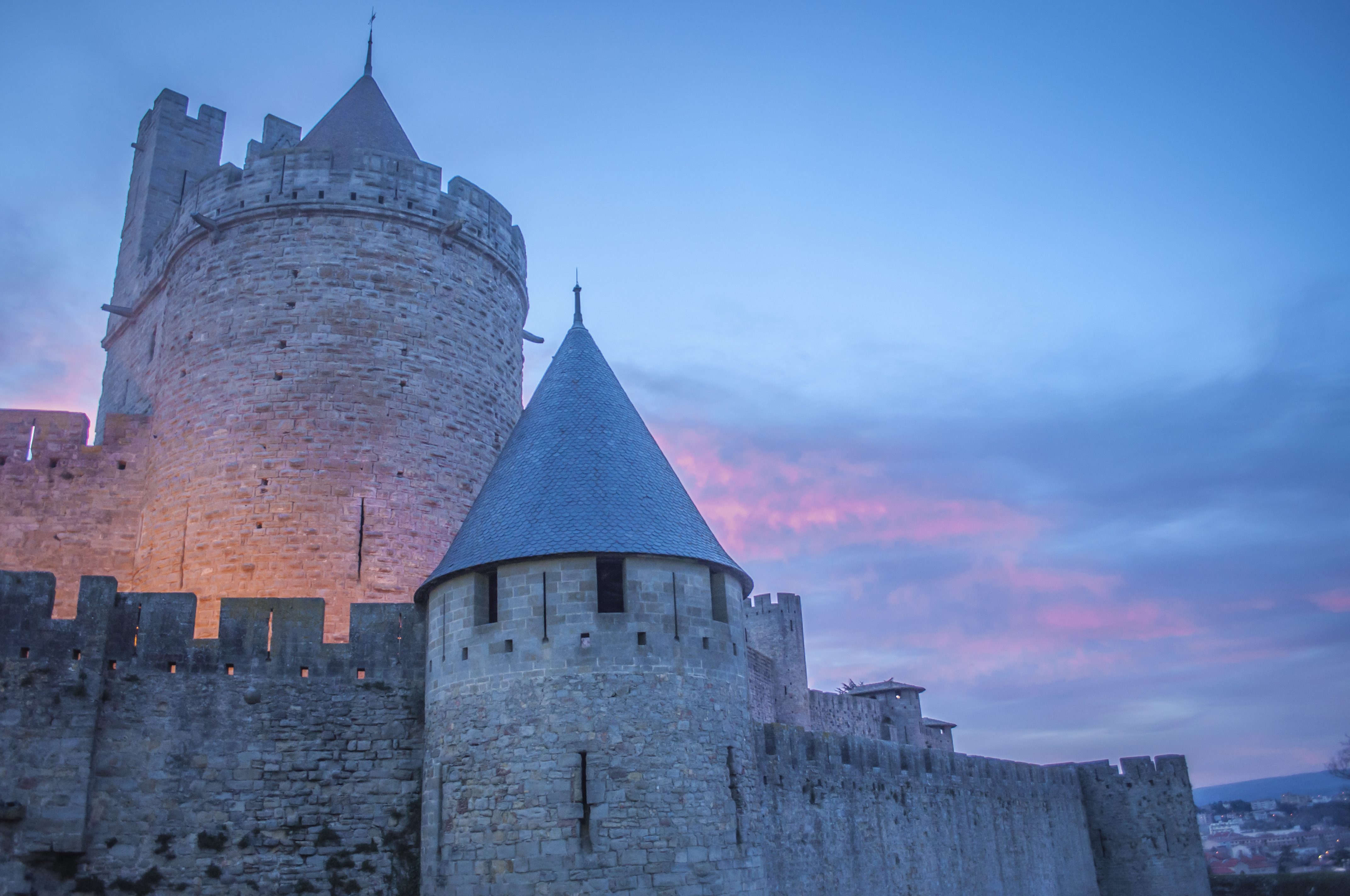 After this stunning hike, we went to the old city walls of Carcassonne (aka “La Cité“).  As we approached the city walls, sunset was falling over Carcassonne.  This was a great opportunity to take some more photos…