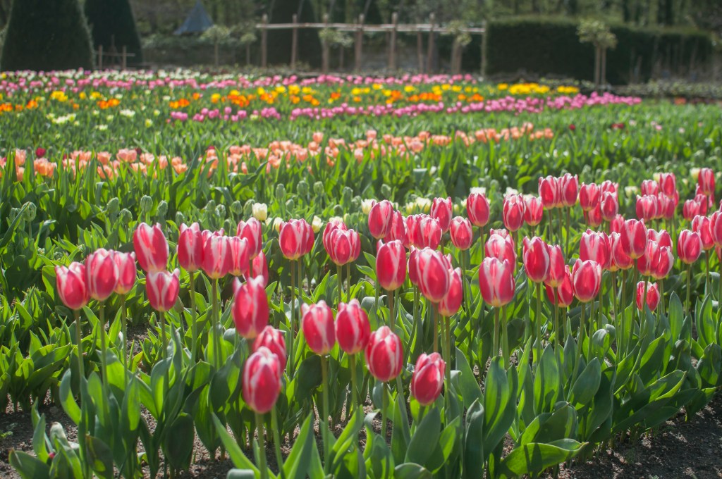 Although the château and the two surrounding gardens are the best part of these grounds, there is plenty to explore beyond that. While walking towards the exit, we came upon these beautiful tulip fields…