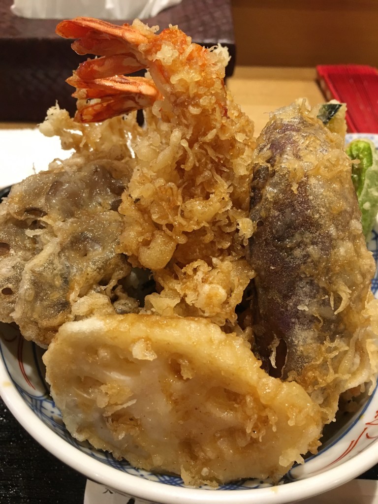 Walking up this mountain worked up a bit of an appetite in us. Thankfully there was no shortage of restaurants to eat at nearby. We chose a tempura restaurant. This is a big difference between Japanese restaurants in the US and in Japan. In a Japanese restaurant in US, you may find ramen, udon, tempura and/or sushi on the menu. In Japan, each restaurant specializes in only one thing. Which means that if you go to a tempura restaurant, the only thing that you’re getting is… tempura. But the good thing is that since the restaurant only does one thing, they do it really well.