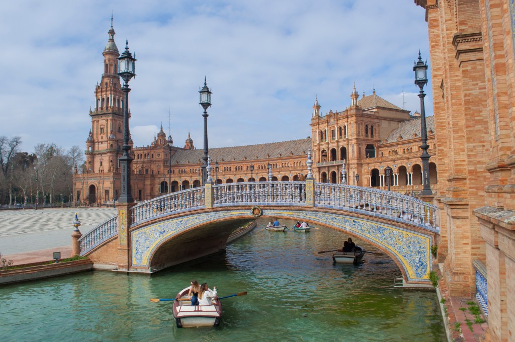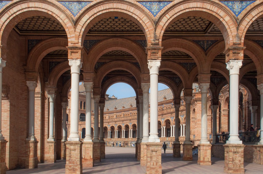 One of the most stunning sights of Seville is the grand Plaza de España. It was built in the early 20th century for the Ibero-American Exposition of 1929. We easily spent time here appreciating the architectural details of this beautiful plaza.