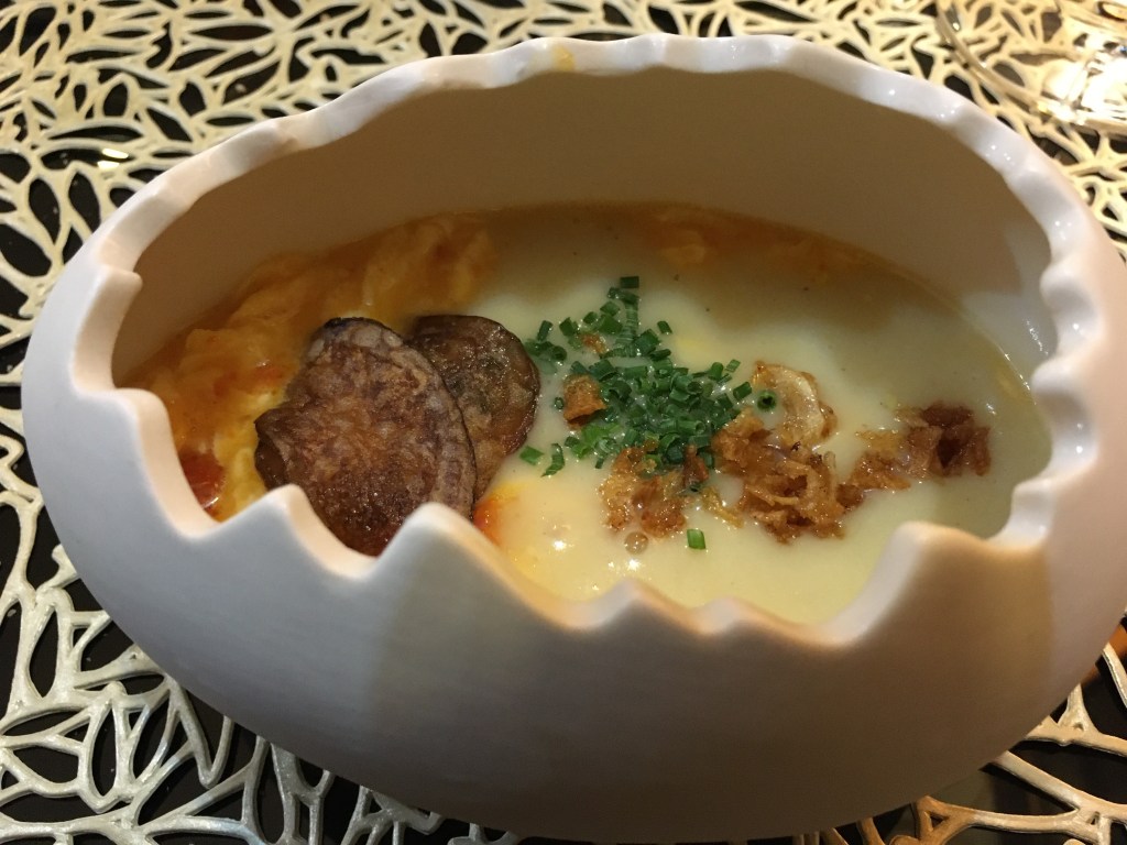 Deconstructed omelette with chorizo