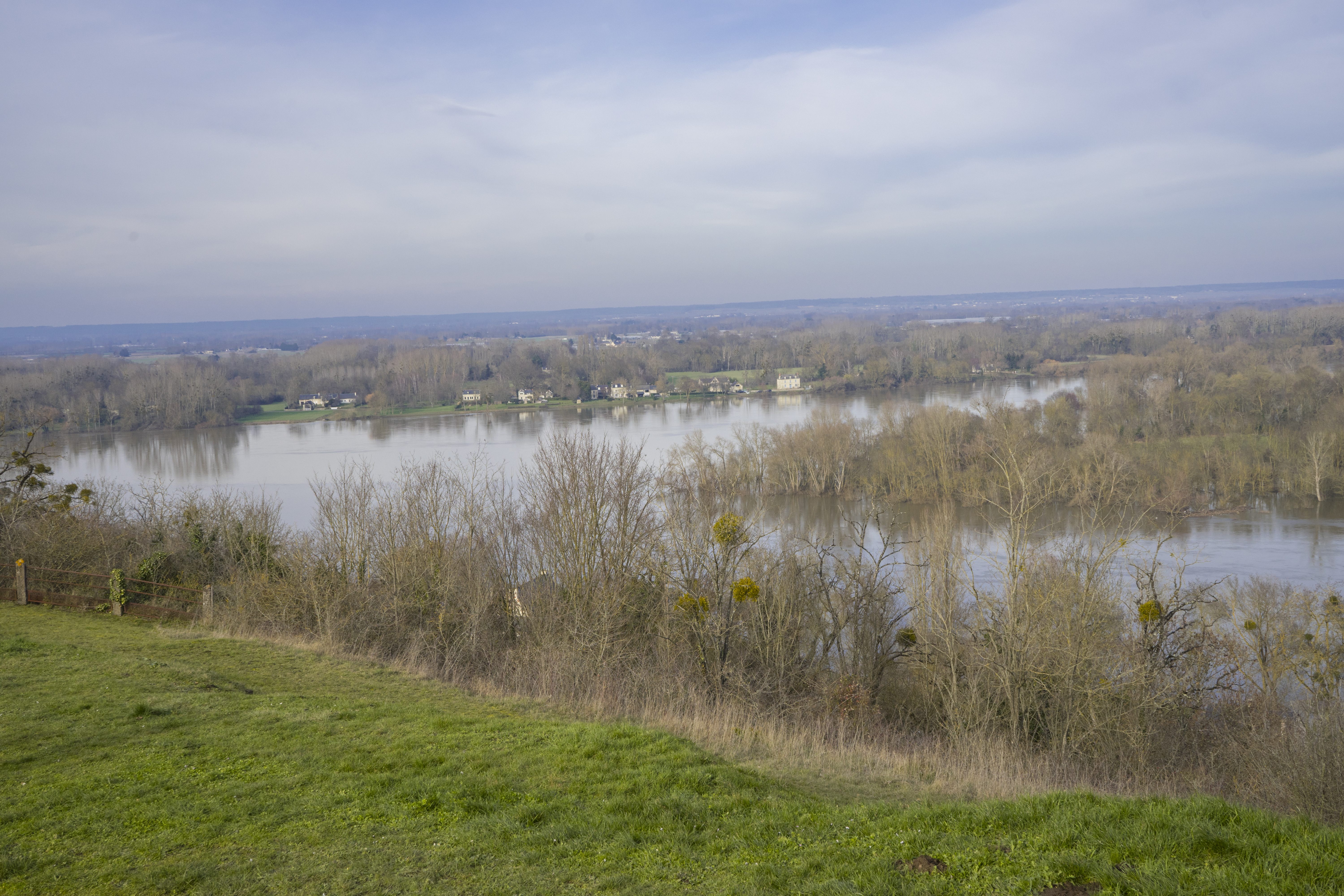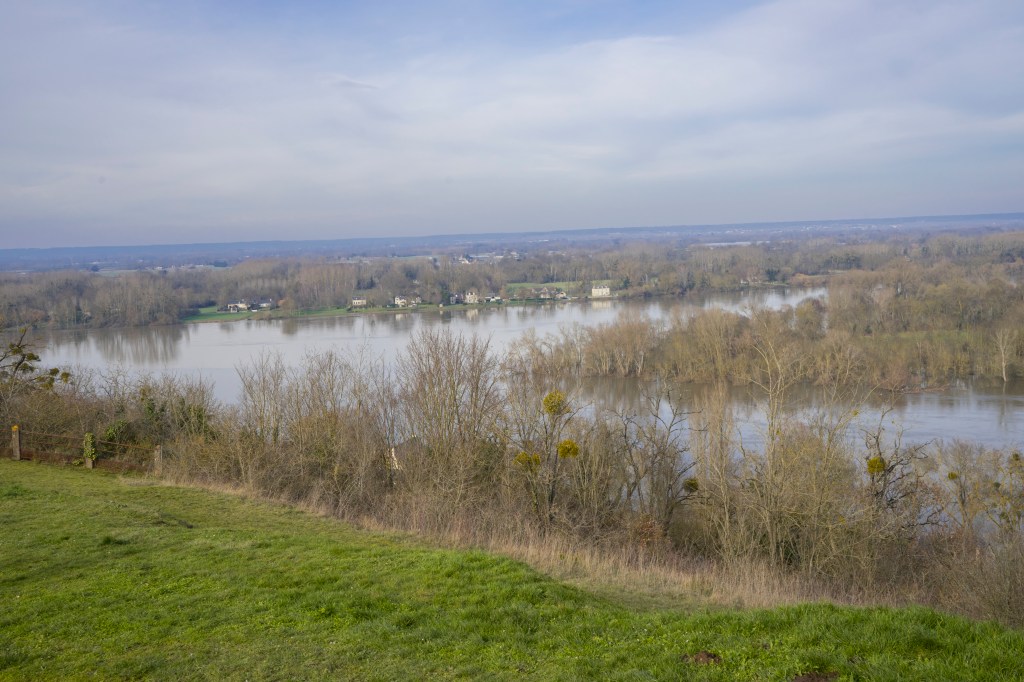 The last village on our list was Montsoreau. When we arrived into this village, we saw that there were people everywhere. There was a flea/antiques market going on which is why there was an influx of people. Since we were trying to be socially-distant, we decided not to stop in town. However, I wanted to go to the other side of the river to get a photo of the town and its chรขteau. After driving across the river, we came upon the road that led to this viewpoint. Sadly, the road was closed to cars due to flooding. Undeterred, we parked our car on the road and walked the last kilometer to get to the riverside. And this is what we saw…