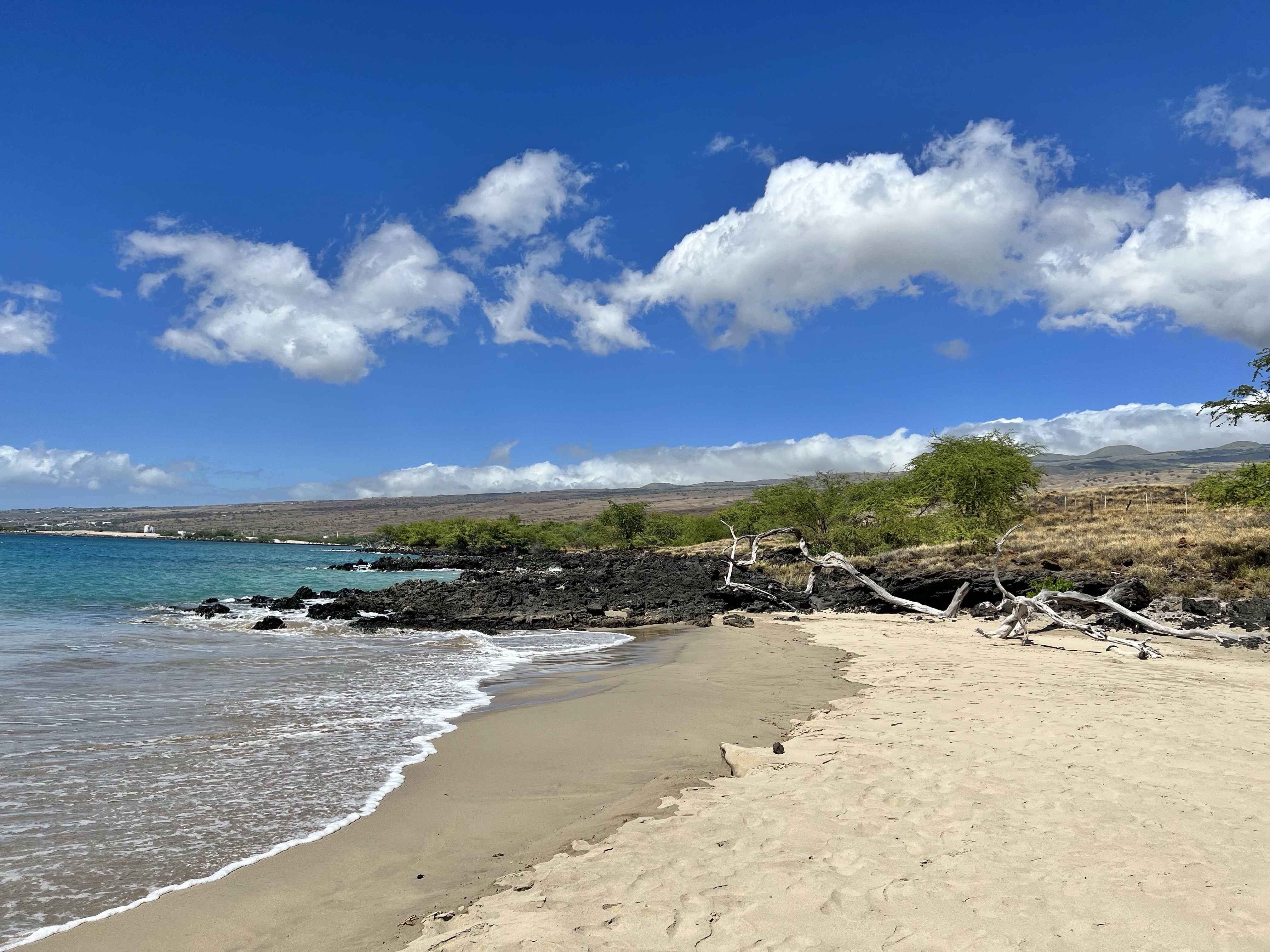 Although the resort had lots to offer, we couldn’t just stay there when there were some beautiful beaches in the surrounding area. Our friends made sure that we were able to visit many of them, all in the same day! Our first beach (and the beach we spent the longest time at) is Mauumae Beach. This beach is a small, secret, white sand beach that many don’t know about. Access to the beach can be reached through the entrance to the Mauna Kea resort. There are only 10 permits given out at a time, so you’ll normally need to go early to snag one of them. We didn’t go early, but since it was off-season, we were able to get in without any issues.