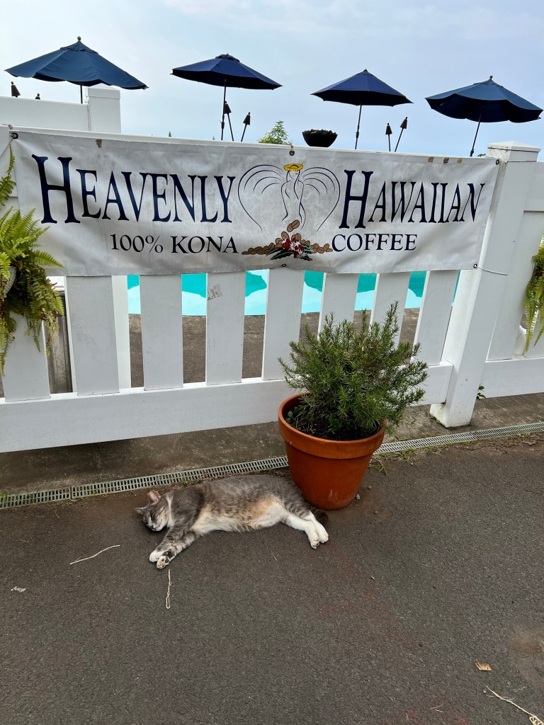 Also we got a warm welcome from Heavenly Hawaiian’s Chief of Gecko Control / Coffee Influencer, Umi the Cat. He even has his own email address!