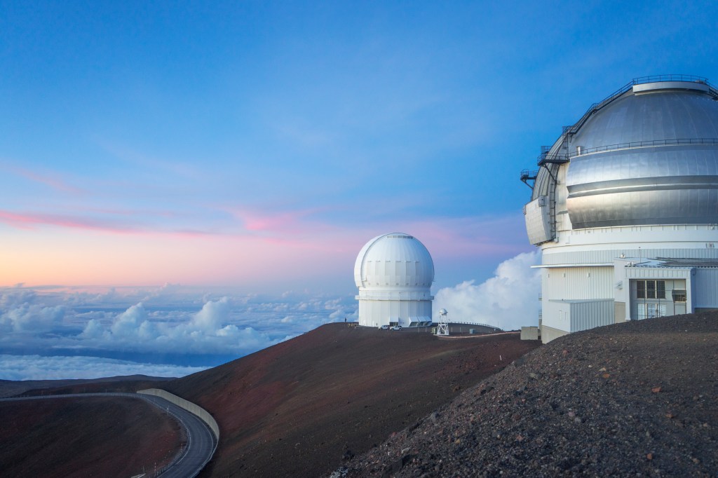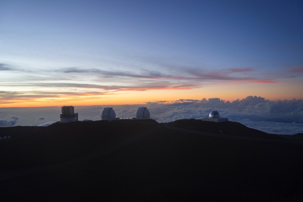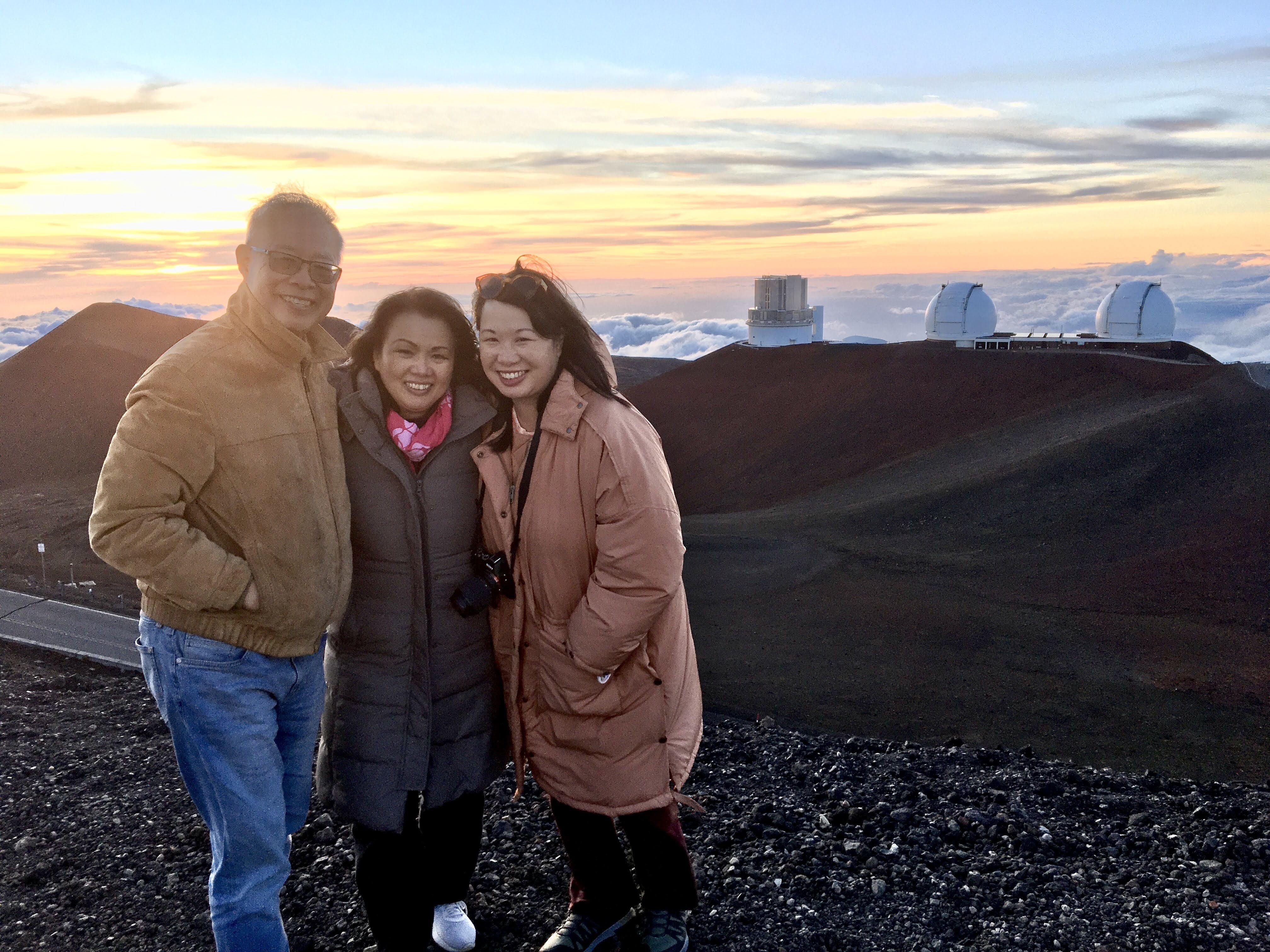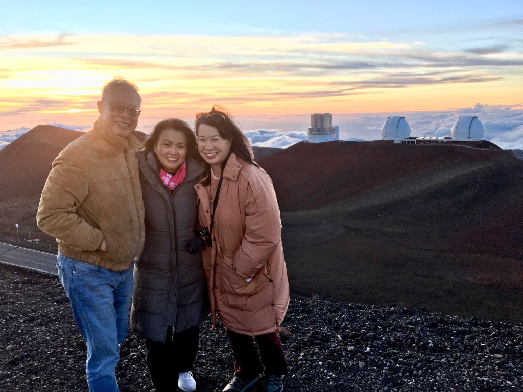 At long last, we made it to the summit of Mauna Kea (13,803 feet [4,207 meters] above sea level), catching it just in time for a beautiful sunset. The air up there is dry, clear, and free of atmospheric pollution, making it a perfect place for astronomical observation. As a result, there are a total of 13 observatories on Mauna Kea, each funded by as many as 11 different nations.