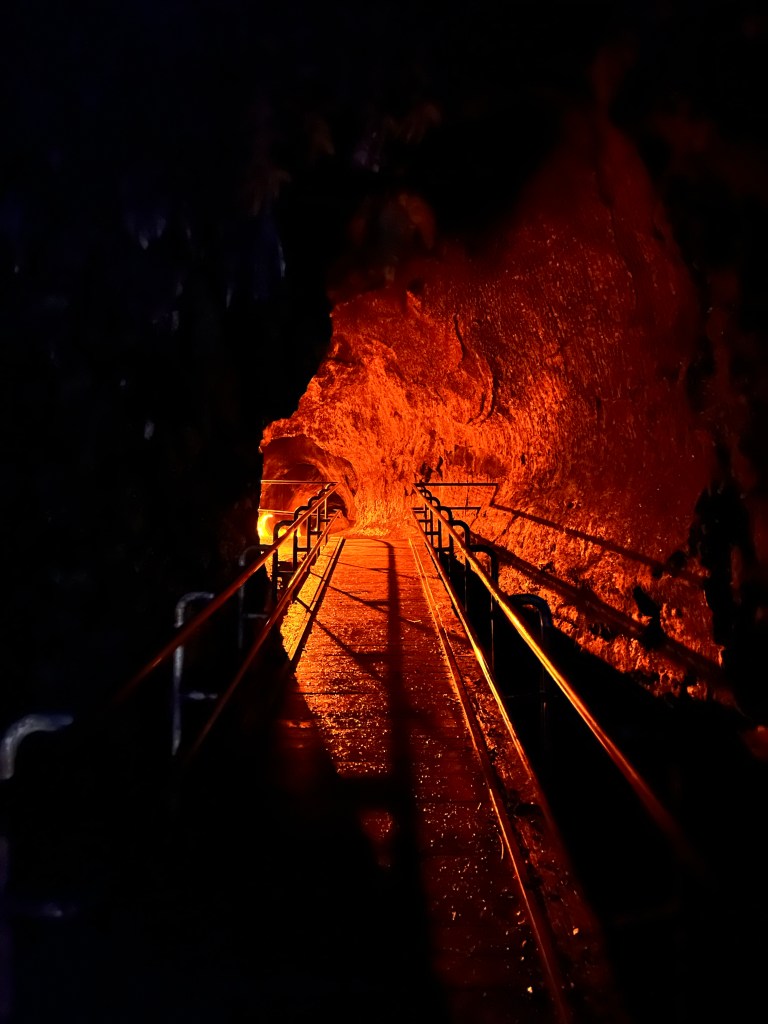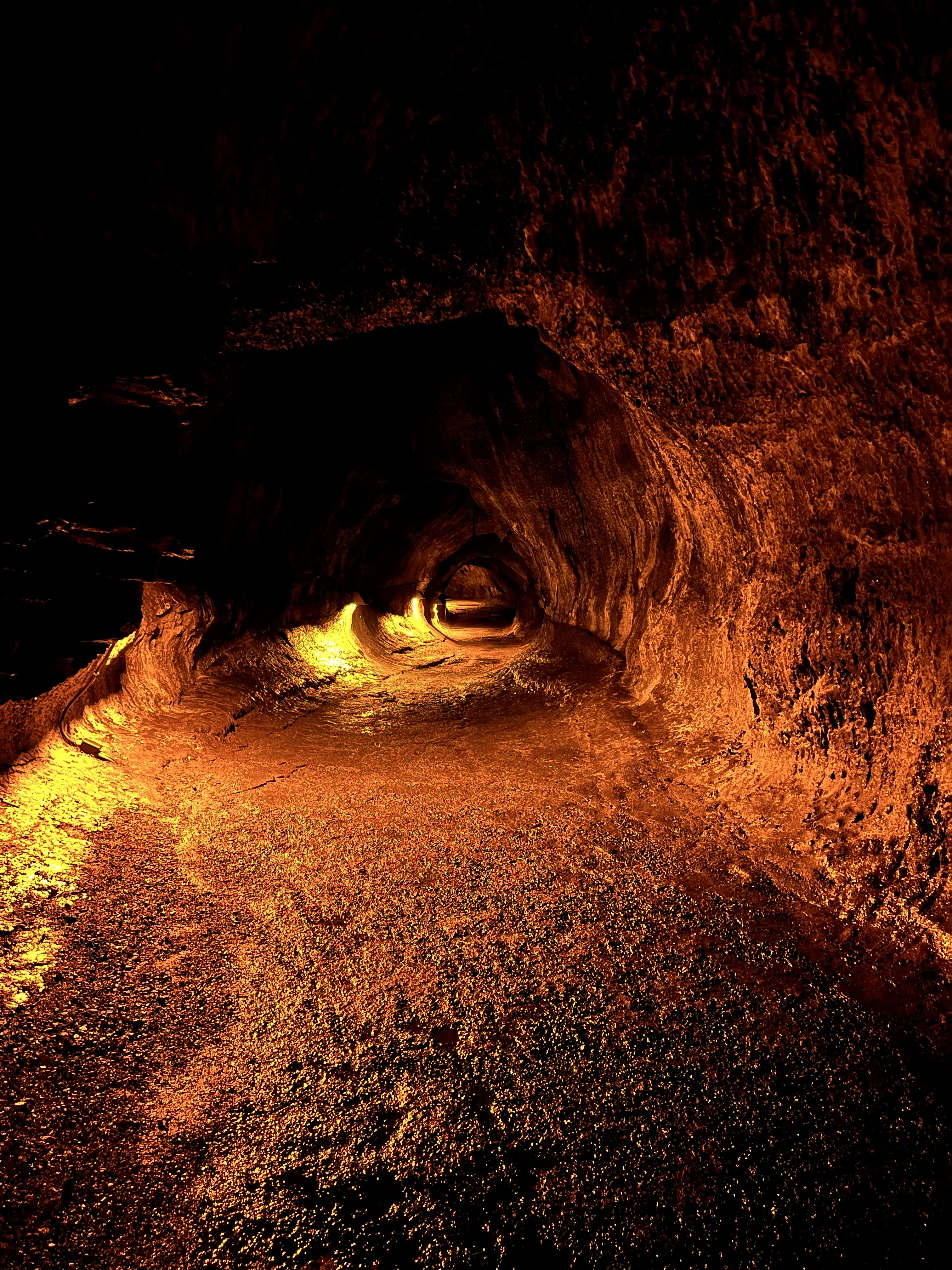 One mini-hike/walk we could do was the Thurston Lava Tube. Lava tubes are formed by lava flowing underneath the surface. Once this lava stops or gets diverted, it leaves behind an empty cave. The Thurston Lave Tube is over 500 years old, so the lava was long gone, making it safe for visitors (like us) to traverse.
