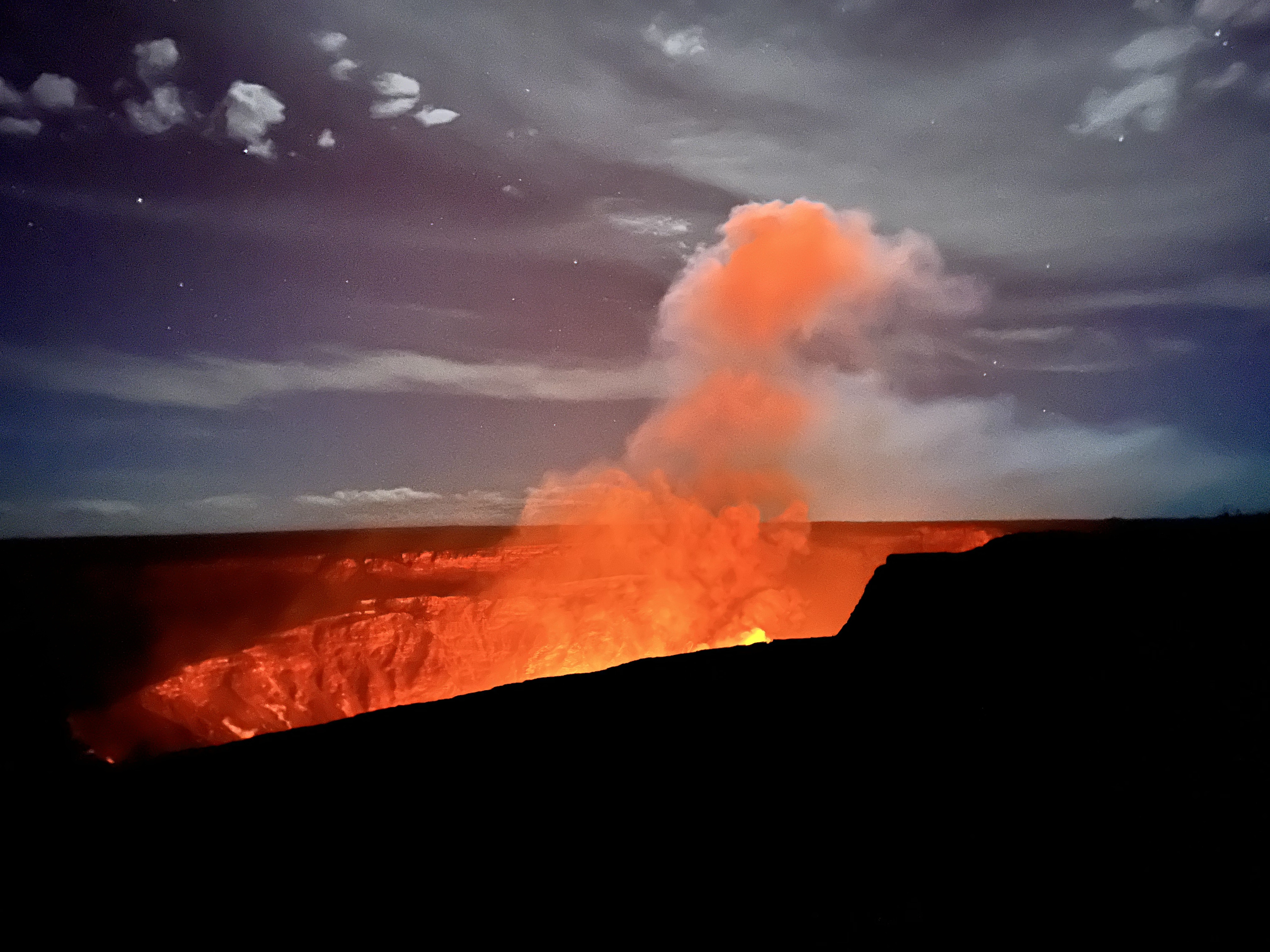 We were fortunate to be able to visit Volcanoes National Park at the time that a volcano was erupting! Kīlauea is the most active of the five volcanoes that form the Big Island. There were many different areas to view this eruption – you can also hike close enough to see some lava flow! Due to time, we picked this one overlook to watch the glow from the volcano – being a volcano newbie, I was happier to be further than closer to an erupting volcano!