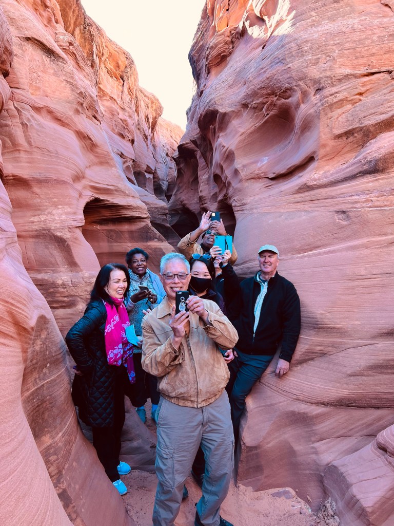 Last, but not least, our main reason for finding ourselves in this part of the United States – Antelope Canyon! Antelope Canyon is located on Navajo land, just about a 10-15 minute drive from Page. Since it is located on Navajo land, no one can visit unless part of a tour. There are a limited number of Navajo-run tour companies that provide the tour, some do Upper Antelope Canyon and the others do Lower Antelope Canyon. We had difficulty deciding between Upper and Lower, but I read in some other blogs that Upper was better for photos, so we chose that one. The tour company that we decided to go with was Adventurous Antelope Canyon Tours. They came highly recommended by a friend (thanks Suzy!). We decided to do their 2 canyon tour: Rattlesnake Canyon + Upper Antelope Canyon tour. Reservations were simple to make online, but it definitely wasn’t cheap (I mean, I could do a whole day at Disneyland for cheaper than this 1.5 hour tour!). But I will say that it was worth the expense. We had friends that met up with us in Arizona, so we were a total of 7, which was perfect because that’s exactly how many fit in our guide’s truck. It was awesome, in these COVID times, to have our own private tour.