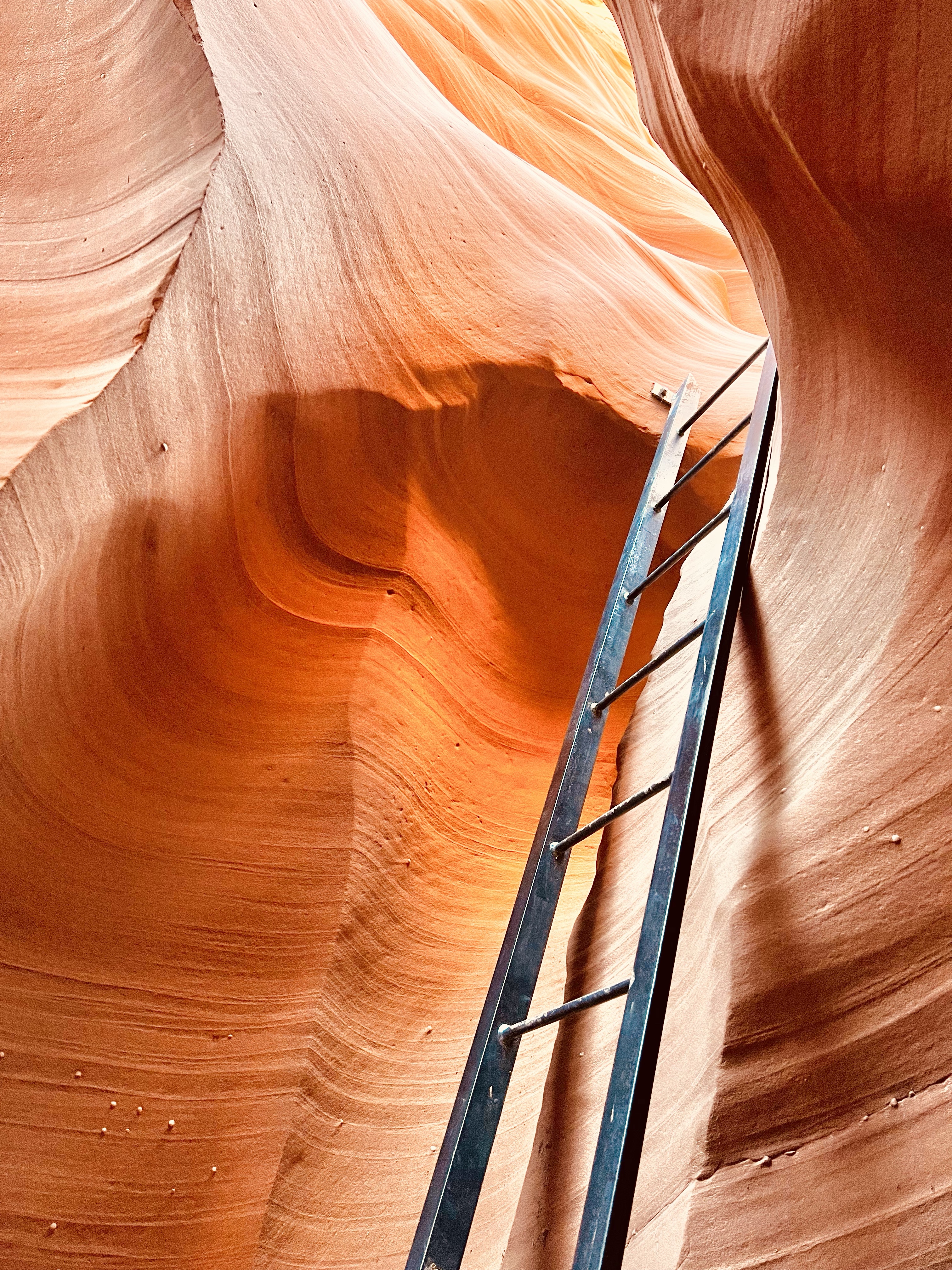 Our tour started off with a visit to Rattlesnake Canyon. Rattlesnake Canyon is exclusively reserved for Adventurous Antelope Canyon Tours to use, so we had this canyon to ourselves. We were able to leisurely wander through this canyon taking plenty of photos. The canyon was also more open, allowing for easier photography in the natural light. Traversing this canyon was also more challenging, with ladders and narrow spaces to navigate, making us almost regret the large blueberry cobbler we had the previous night. Almost.