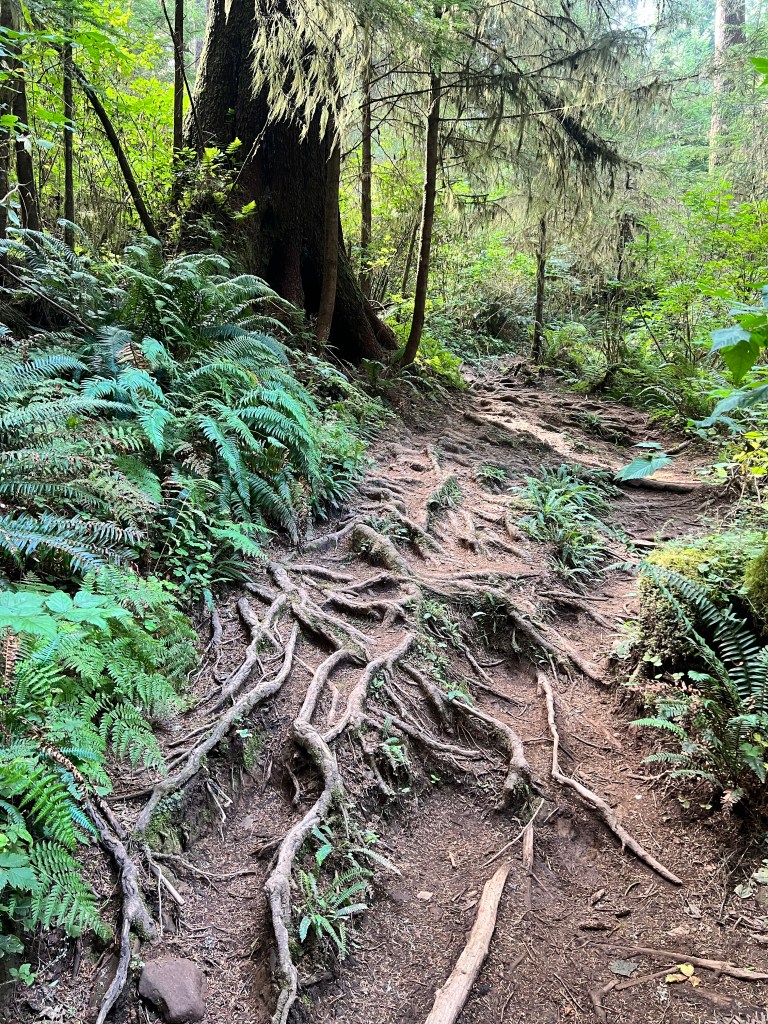 If we had continued just about a mile and a half further, we likely would have seen the best part of the hike, with coastal views leading down Indian Beach. But we were running out of time and energy, so sadly we had to turn around here and hike 4.5 miles back to the car.