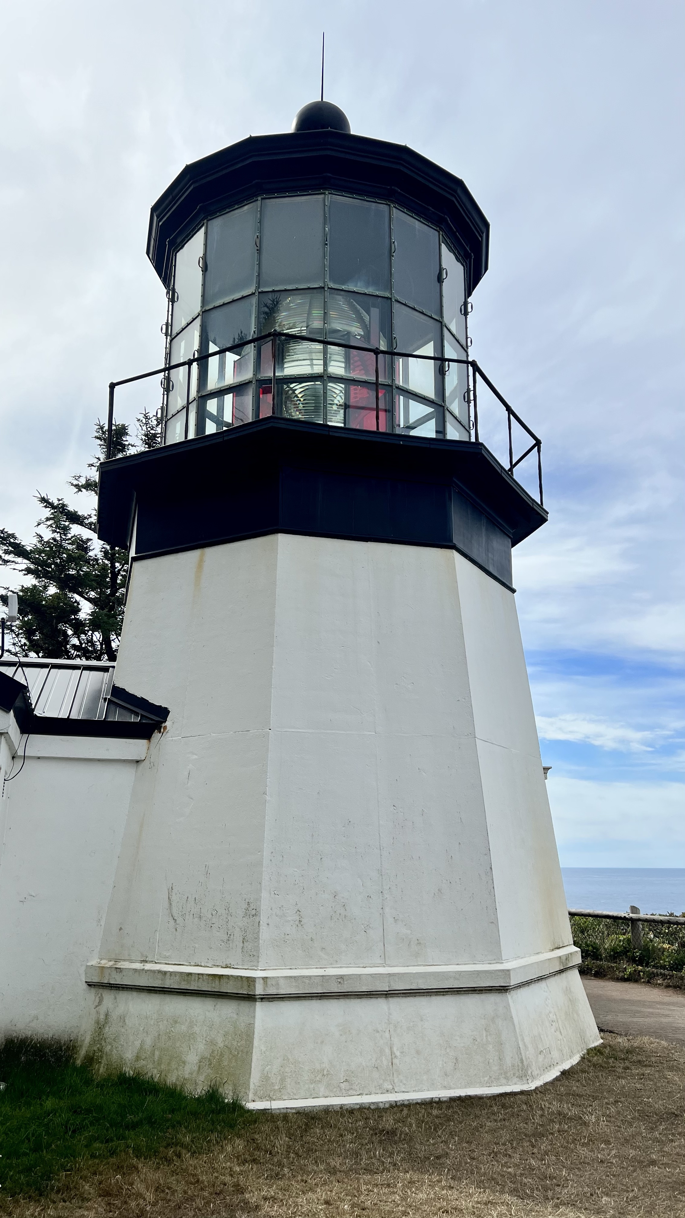 The first highlight is the Cape Meares lighthouse. It’s not very big – in fact, it’s actually the shortest lighthouse on the Oregon Coast, but its position on a high cliff and its powerful Fresnel lens (made in Paris, France!) can be seen from more than 21 miles away. There’s a little display area in the lighthouse that talks about its history, including how they hauled the massive lens 217 feet up the cliff by a wooden crane in the late 1800’s. Amazing!