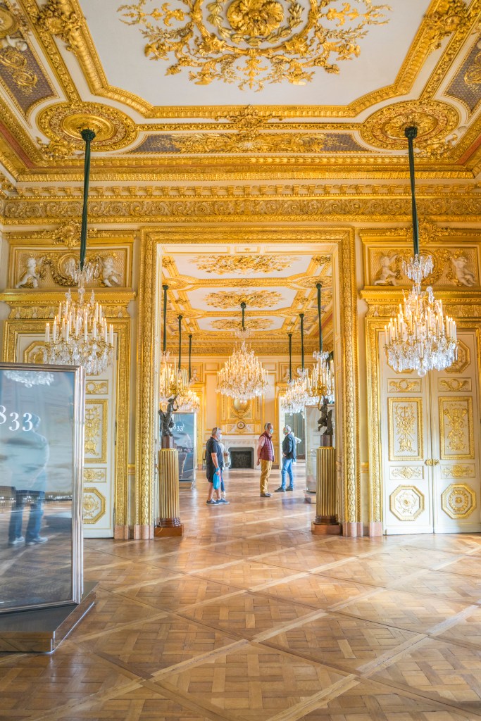 I’ve walked by the Hôtel de la Marine plenty of times and never even realized it was there. And that was for very good reason – this building has been closed to the public for about 200 years and just recently opened in June of this year (2021). Hôtel de la Marine was built in the mid-1700’s to house the King’s furniture collection (basically, a glorified warehouse) and to house the the Royal Furniture Keeper (le Garde Meuble – yes that was actually a job). The Hôtel’s original purpose did not last very long, since in the late 1700’s, well… The French Revolution happened. The Royal Furniture Keeper was assassinated in a French prison and King Louis XVI and Marie Antoinette were put to death, right in front of this building, at the Place de la Révolution (now known as the Place de la Concorde. In 1798, the Navy took over the space and pretty much stayed there (with the exception of a brief Nazi occupation during World War II) until 2015.